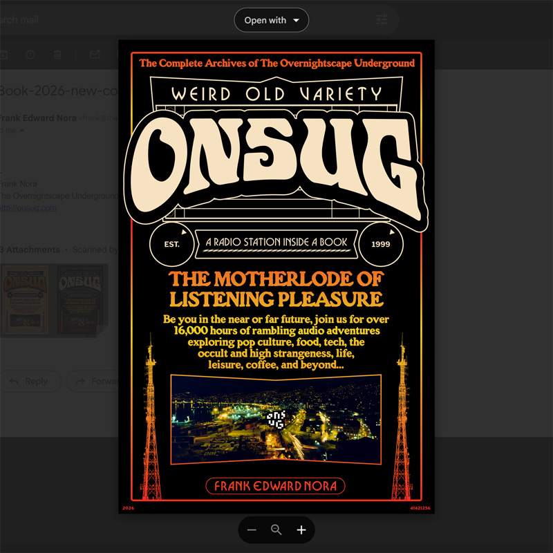 2:13:35 – Frank in New Jersey, plus the Other Side. Topics include: Found my sunglasses, cleaning up the studio, seas, how I lost my previous sunglasses, new book cover concept with black background, Chips, Board Game Arena, Flip 7, Cosmic Wimpout, Flea Devil Solitaire – 777 breakthrough, Opie and Anthony, Sifl & Olly, deja vu, Allways Cream Soda Drink Drops, Bob Weir of The Grateful Dead dead at 78, The Eleven, Piffle from Dragonmaster, Treezle Trookus, Johnny Pitch, Margorie Prime, Tanner ’88, Blade Runner, and much more… plus the Other Side (at 1:32:48)… Mustapha by Urban Castle Magic [Jamendo, CC BY-NC-SA 3.0], Inside a train cabin on a train from to Tucuman to Buenos Aires (Argentina) [freesound, felix.blume, CC0 1.0], Toes in the Sand by Agent Octopus [SurfGuitar101.com, CC BY-NC-ND 4.0], micronauts 1: circa ’77 [YouTube], Precious Time by Farmertan [Jamendo, CC BY 4.0], Grand Forks – Columbia Mall commercial (1980) [YouTube], Ganesha by Adamaximus [Jamendo, CC BY-SA 3.0], WSNS Channel 44 – The Star Spangled Movie – “Adventures of Captain Fabian” (Promo, 1980) [FuzzyMemories.TV], Red Rose Flow by Kino Oko [Ektoplazm, CC BY-NC-SA 3.0], 1975 Mattel Michael and Melinda Young Sweethearts dolls TV commercial Ads [YouTube], Will You Be My Teddy Bear by Ada Jones & Billy Murray (1907) [Archive.org, public domain], WLS Channel 7 – Late Night Movie – “A Woman Rebels” (Opening, 1980) [FuzzyMemories.TV], Bubble Bath Aftermath by virt [Ubiktune, CC BY-NC-ND 3.0], 3Com “Audrey” [YouTube], Aftermath by Brady Arnold [Archive.org, CC BY-NC-ND 4.0], PM Magazine – “Joan Esposito Audition” (1980) [FuzzyMemories.TV], JR Ikebukuro station Departure melody [YouTube], Van 10 by Bumbard [Onsug, CC BY-NC-ND 4.0].